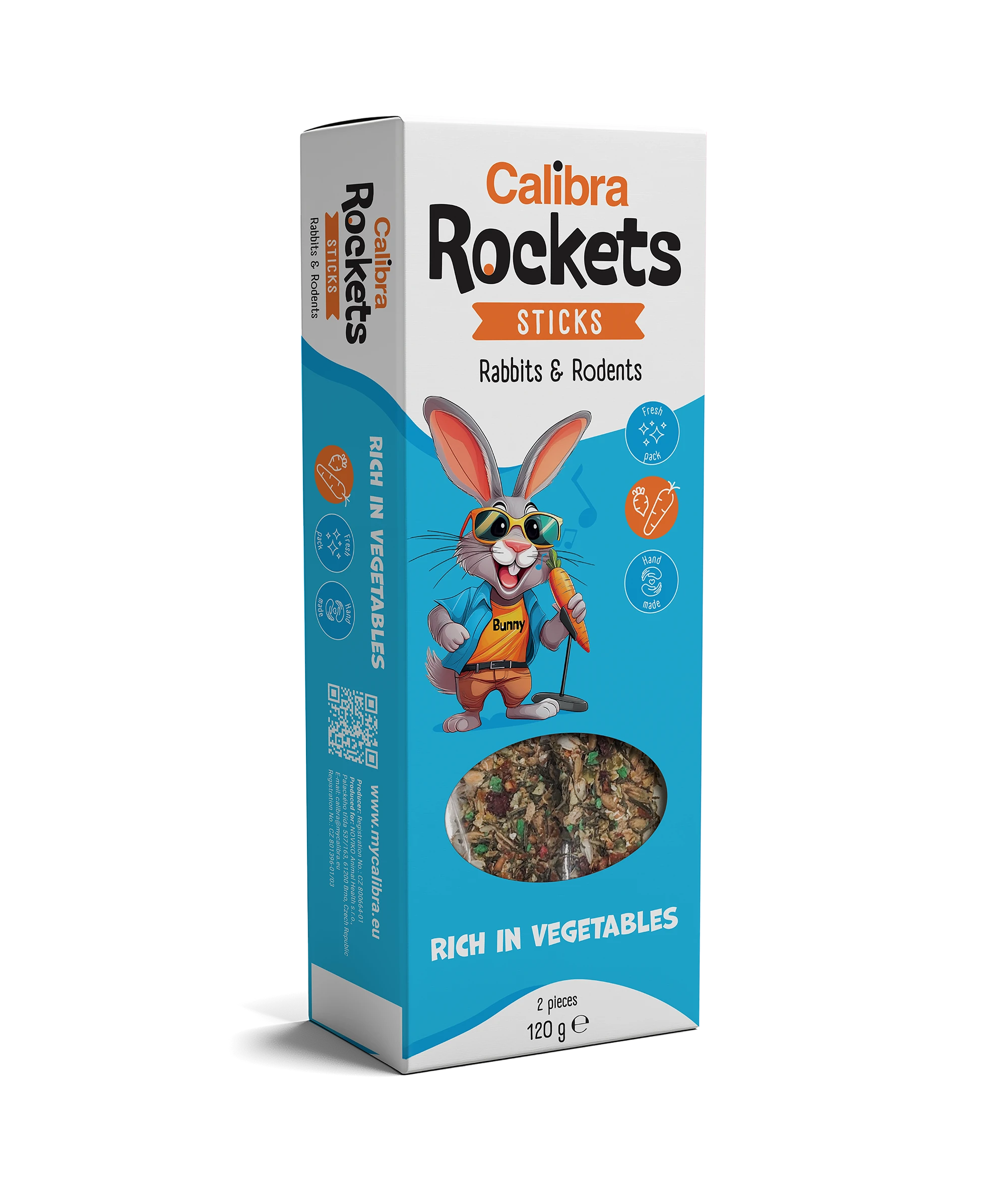 Lovingly made with wholesome ingredients like fruits, vegetables and nuts, Calibra Rockets Snack Sticks are the ultimate treat for your small pets. Handcrafted with care, these tasty sticks offer a fun and nutritious way to keep your little companions entertained and happy. With no artificial colours and a recipe full of natural goodness, they’re a snack you can feel good about giving.
