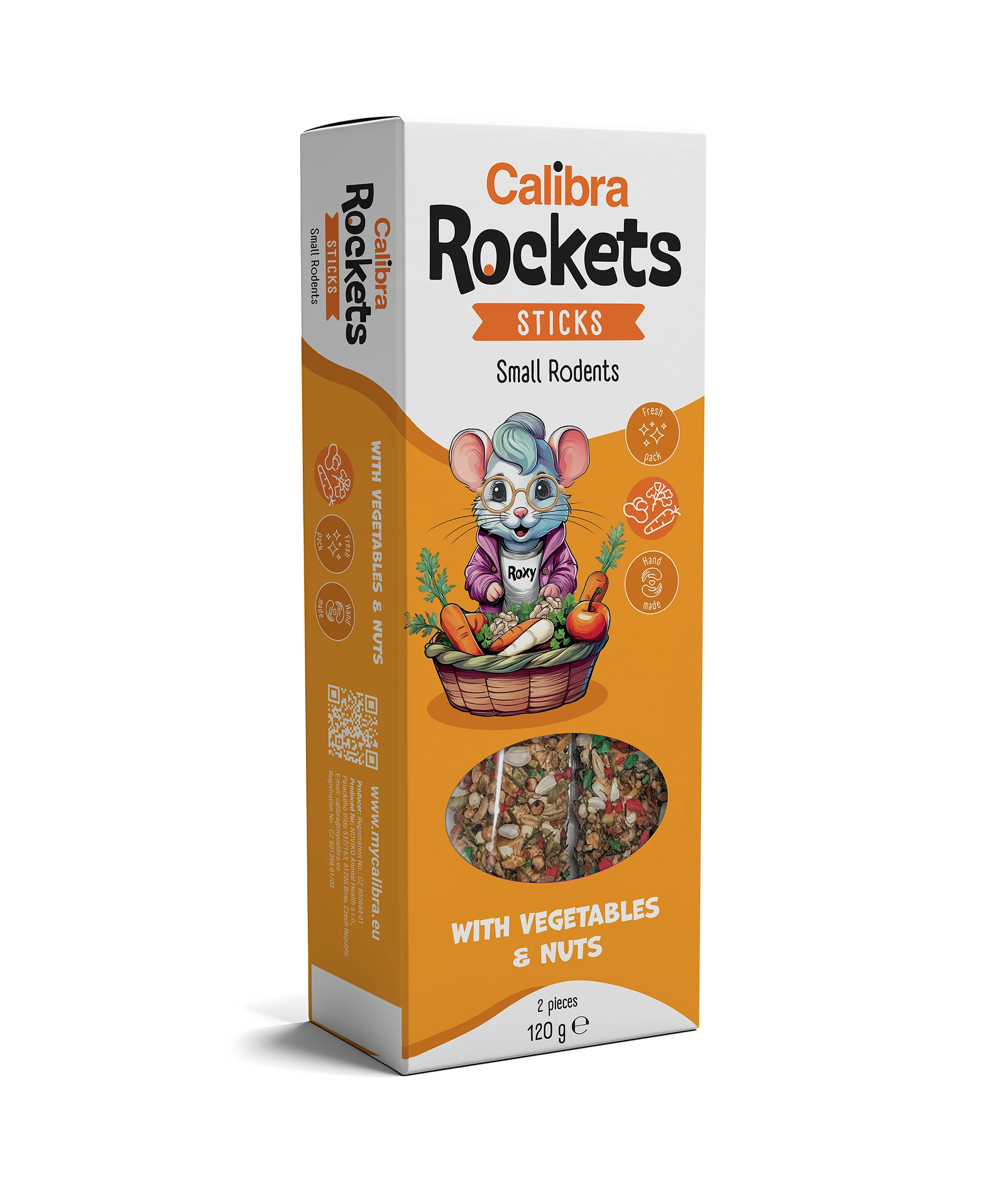Lovingly made with wholesome ingredients like fruits, vegetables and nuts, Calibra Rockets Snack Sticks are the ultimate treat for your small pets. Handcrafted with care, these tasty sticks offer a fun and nutritious way to keep your little companions entertained and happy. With no artificial colours and a recipe full of natural goodness, they’re a snack you can feel good about giving.